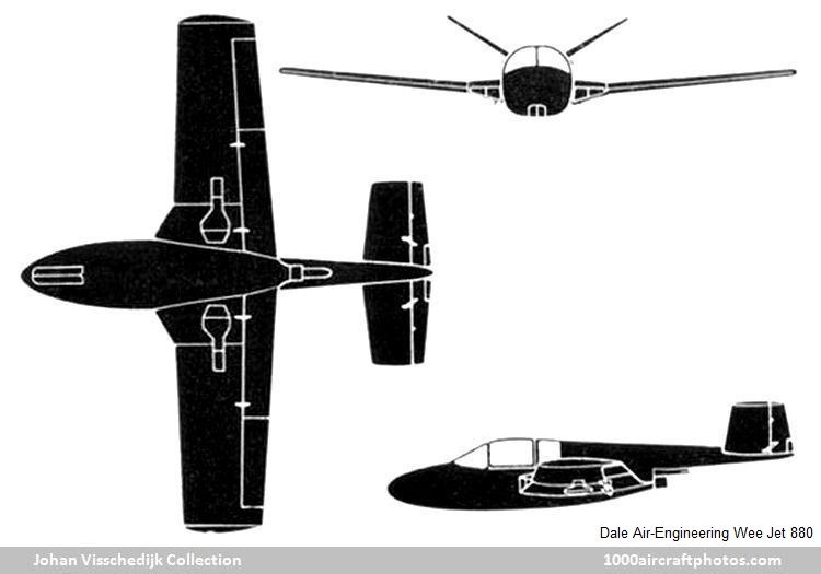 Johan Visschedijk: "In the early fifties Harold Dale played with the idea to design the ideal jet trainer: seating trainee and instructor side-by-side in front of the wing for clear visibility all around. It should have a slow landing speed and a comfortable cruising speed of 350 mph. The plane Harold had in mind was a mid-wing cantilever monoplane of aluminium alloy structure, with slotted flaps, leading edge intake ducts, semi-monocoque fuselage, upwards opening doors, butterfly tail unit and retractable tricycle landing gear.